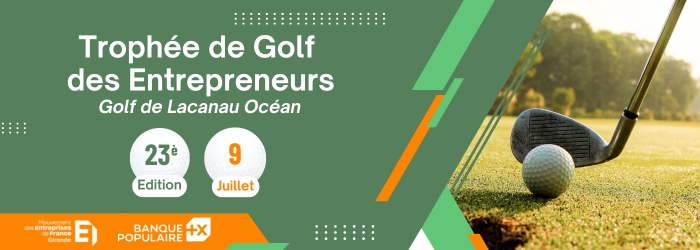 09Jul8h3016h0023ème Trophée de Golf des EntrepreneursEn partenariat avec la Banque Populaire Centre Atlantique. Inscription obligatoire.8h30 - 16h00 CatégorieTournoi sportif