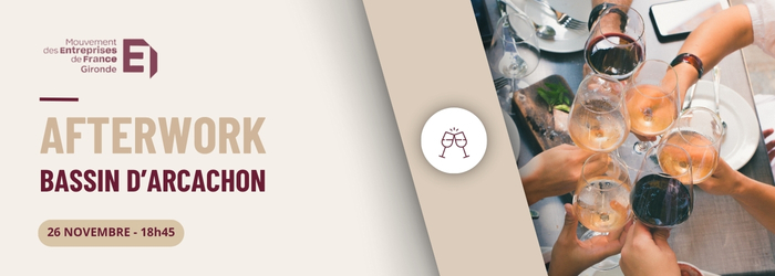 26Nov18h3021h00Afterwork Bassin d'ArcachonInscriptions obligatoires.18h30 - 21h00 CatégorieAfterwork